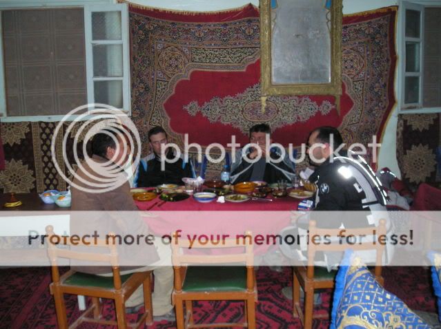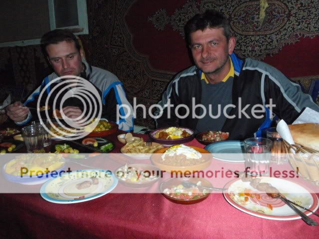 Το πρωί μας περίμενε ένα εξωπραγματικά πλούσιο πρωινό - για τα δεδομένα του μέρους και των συνθηκών – το οποίο εκτιμήσαμε και τιμήσαμε με χαρά αφού δεν ξέραμε πότε θα ήταν το επόμενο γεύμα μας! Η μεγάλη έκπληξη όμως ήταν όταν θελήσαμε να χαιρετήσουμε τον Γιούσεφ, προθυμοποιήθηκε να έρθει μαζί μας για τα επόμενα λίγα χιλιόμετρα για να μας δείξει τον δρόμο. Του είπαμε πως έχουμε καταγεγραμμένη τη διαδρομή αλλά μας εξήγησε πως παρακάτω θα μπούμε στην κοίτη ενός ποταμού – 3,5 χιλιόμετρα!! – με πάρα πολύ ψιλή και δύσκολη άμμο. Τα μονοπάτια δεν ισχύουν εκεί λόγω της διαμόρφωσης του εδάφους και θα μας έδειχνε ένα – σχετικά – βατό που χρησιμοποιούσε πολύ συχνά τον τελευταίο καιρό. Επίσης μας πρότεινε να νοικιάσουμε – για ένα ευτελές ποσό -ένα τρακτέρ για να μας περάσει τις αποσκευές στο δύσκολο κομμάτι ωστε να είμαστε πιο άνετοι. Μας είχε κερδίσει την εμπιστοσύνη και δε ζημιωθήκαμε ακολουθώντας τις συμβουλές του!! Βάλαμε βενζίνη στο χωριό - ευτυχώς ένα φίλτρο που είχαμε προμηθευτεί μας γλίτωσε από πού σαβούρα... - και ξεκινήσαμε!  Η συνέχεια με εικόνες....