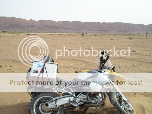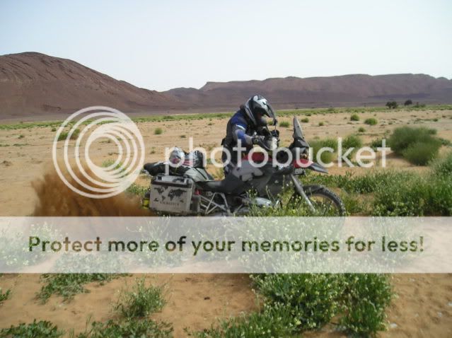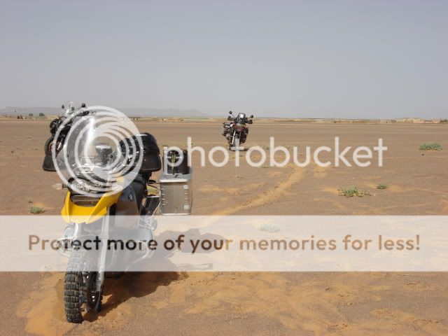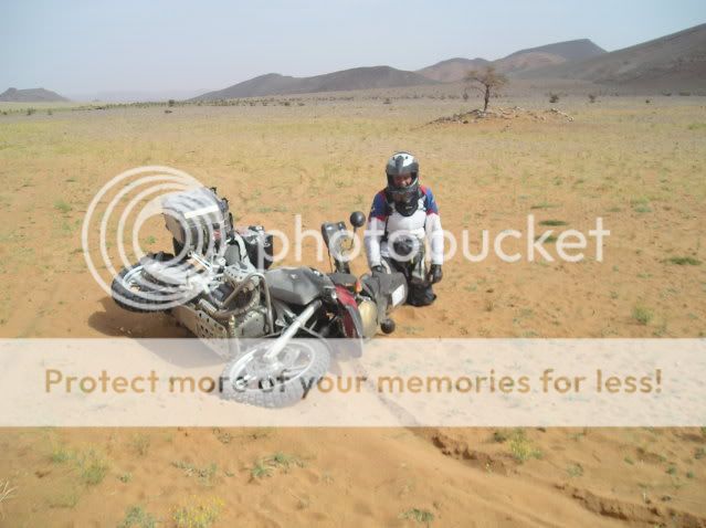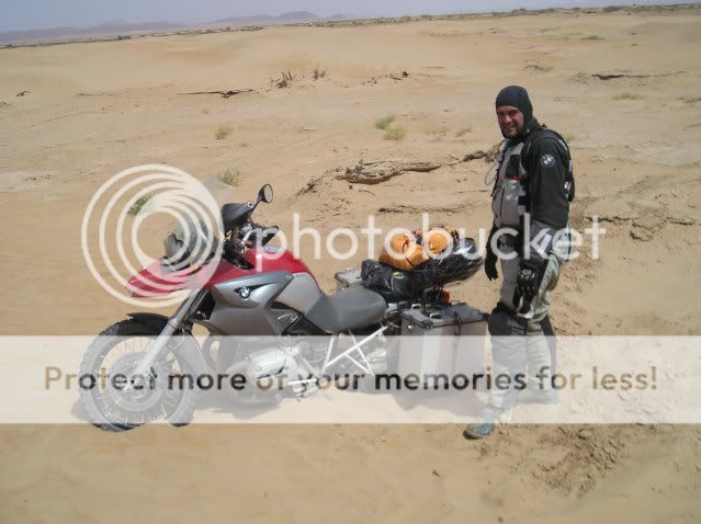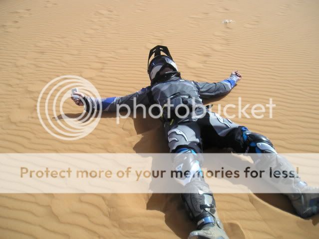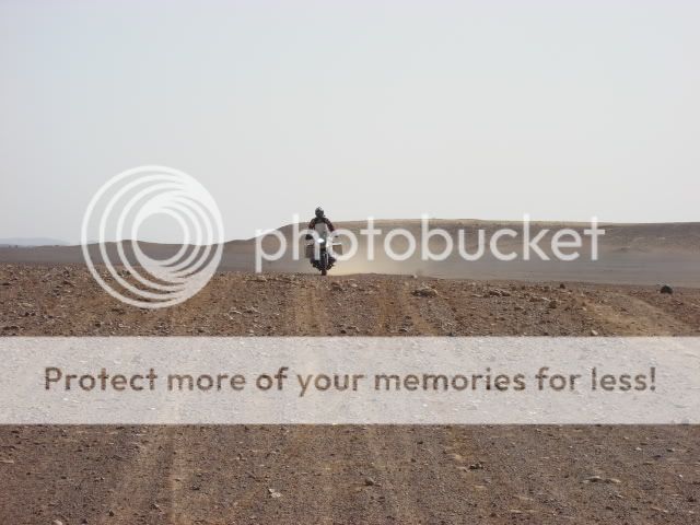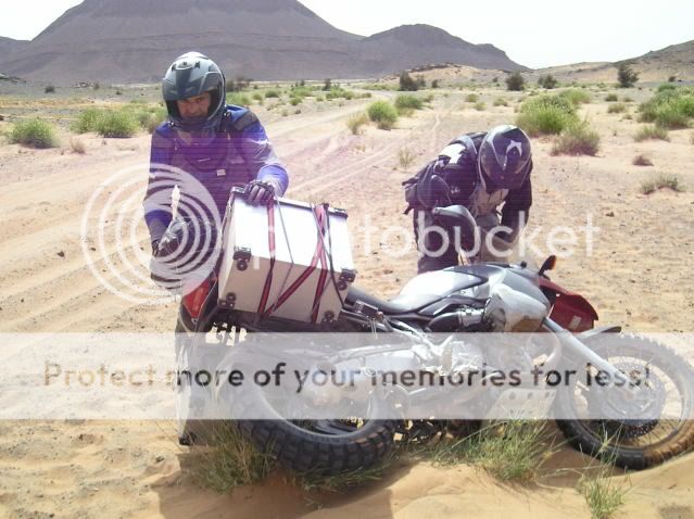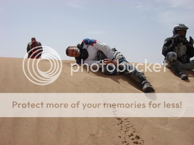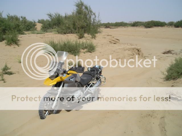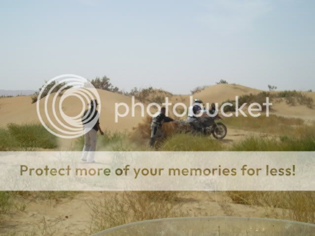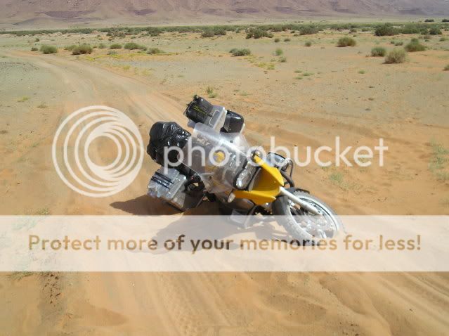 Οι πλαϊνές βαλίτσες άντεχαν στις πτώσεις αλλά ΑΝ γινόταν κάτι ποιο σοβαρό τι θα κάναμε; Θα συνεχίζαμε το ταξίδι με τα σώβρακα και τις κάλτσες στις τσέπες; Τέλος καταλάβαμε πως η πορεία πάνω στο πατημένο μονοπάτι κάθε άλλο παρά συνετό ήταν για τον απλό λόγο πως η άμμος δεν ..πατιέται αλλά απλά σκάβεται και γίνεται πιο αφράτη. Έτσι αναγκαστήκαμε να οδηγούμε δίπλα από αυτό, στην απάτητη άμμο, η οποία δε γνωρίζαμε τι κινδύνους έκρυβε από κάτω της.