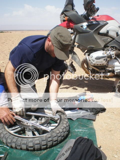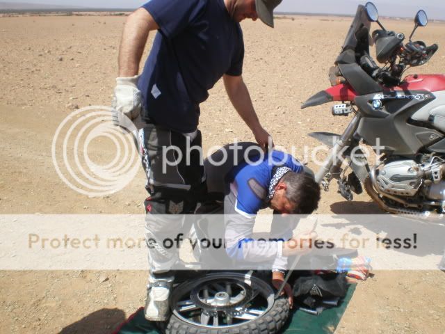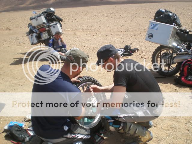 Ήμασταν πολλές χιλιάδες χιλιόμετρα από το σπίτι μας και από κάποιο σύγχρονο νοσοκομείο. Μια σοβαρή πτώση με τραυματισμό ή σοβαρή ζημιά στην μηχανή θα μας έβαζε σε μεγάλους μπελάδες. Επιπλέον τα θηρία μας με full φορτίο δεν ήταν και πολύ ορεξάτα να ξεκολλήσουν από την ψιλή άμμο. Δε θέλαμε να το διακινδυνεύσουμε. Επίσης μια μικρή ατυχία του Νίκου και εμένα μας ανέδειξε και άλλο θέμα.